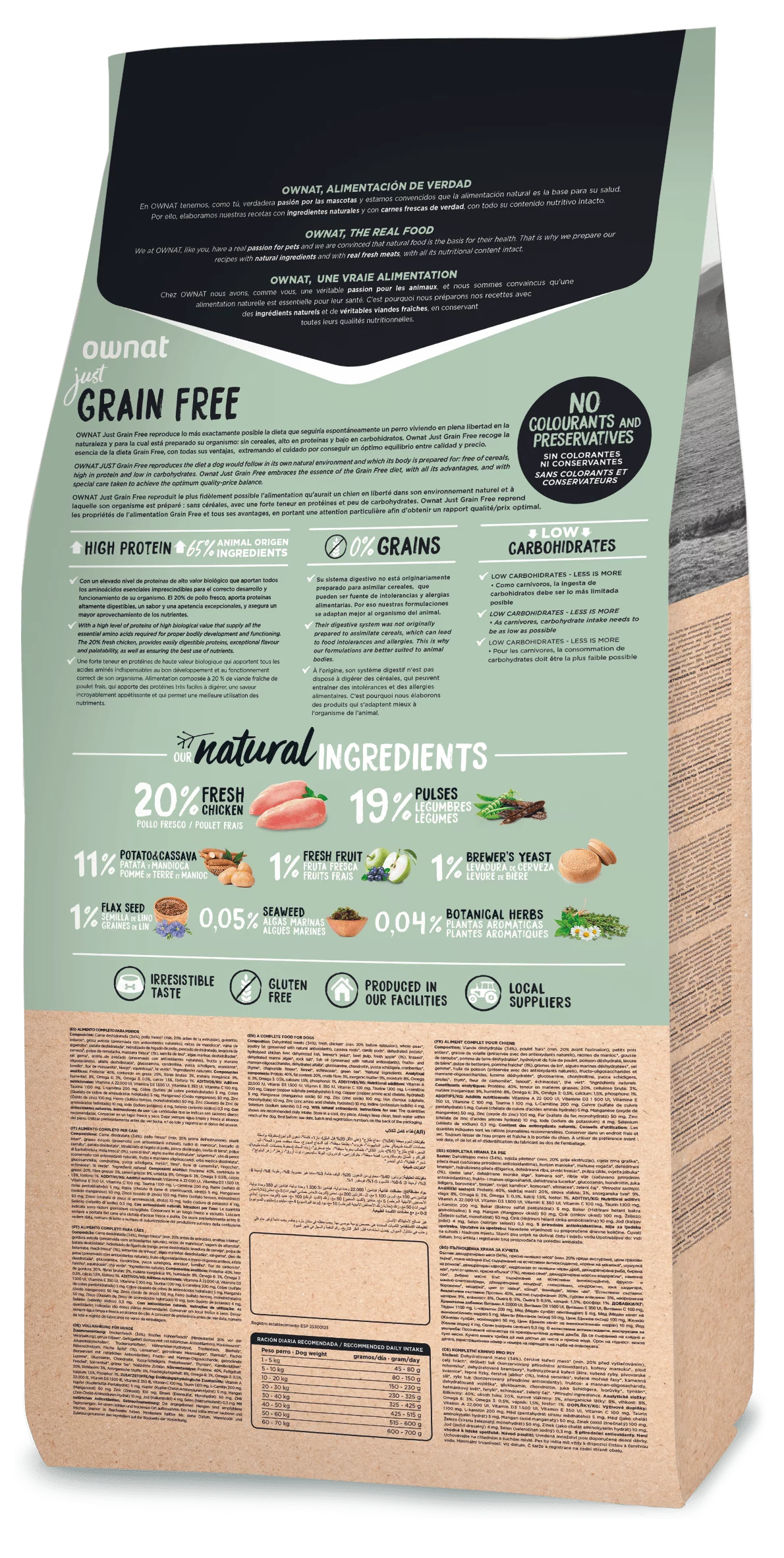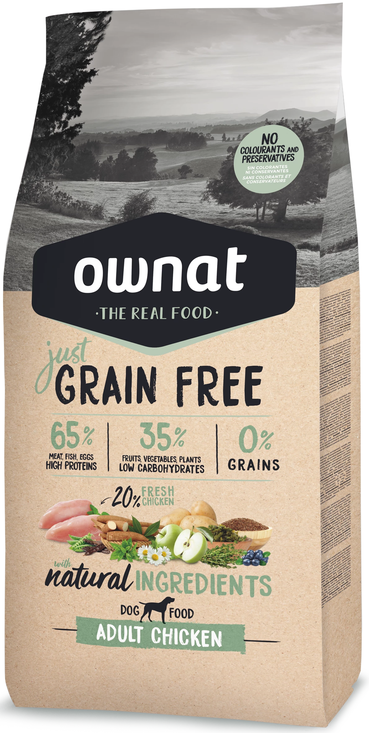 Ownat Just Grain Free comprend l’essence du régime sans céréales (sans céréales, riche en protéines et pauvre en glucides) avec tous ses avantages, en veillant à atteindre un équilibre optimal entre qualité et prix.