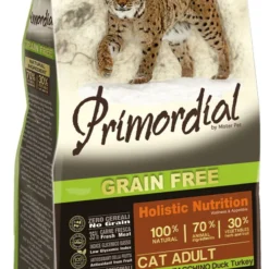 Le Nourriture pour Chats Adult Canard et Dinde de Primordial est un aliment très complet puisque sa saveur au dinde et canard fera que votre chat le dévorera..Cette formule est indiquée pour chats adultes.