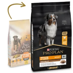 « PURINA® PRO PLAN® DUO DÉLICE « PURINA® PRO PLAN® DUO DÉLICE Medium & Large Adult Chicken est un aliment complet et équilibré avec la bonne combinaison de nutriments pour aider à maintenir la santé et le bien-être des chiens adultes de moyenne et grande race.