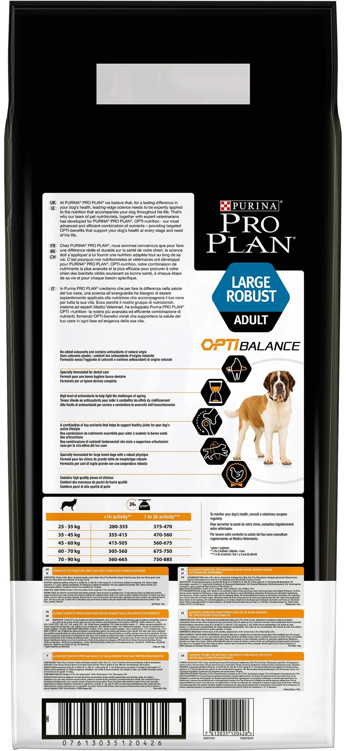 PURINA® PRO PLAN® Large Atheltic Adult with OPTIBALANCE® riche en poulet est un aliment sec complet pour chiens adultes.