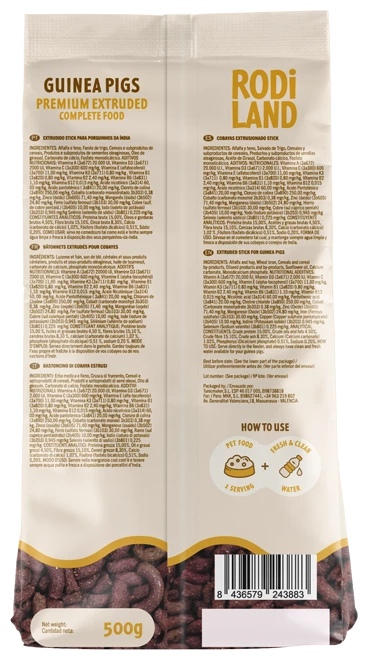 Cet aliment contient des fibres longues qui facilitent sa digestion, ainsi que de la luzerne, du foin, du blé, des céréales et des graines, qui constituent sa principale source d’énergie. Rodiland a pensé à tout et cette recette est réalisée avec un faible pourcentage de matières grasses, car comme on le sait, les cochons d’Inde ont tendance à prendre facilement du poids.