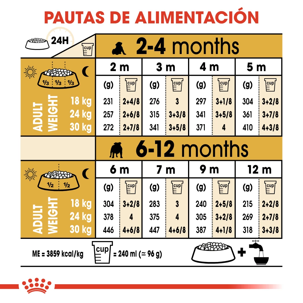 Royal Canin a développé cette nourriture complète pour satisfaire les besoins nutritionnels des chiots de la race Bulldog âgés de 2 à 12 mois, en prenant en compte leurs besoins nutritionnels spécifiques et en jouant un rôle préventif dans le cas de certains troubles propres à la race.