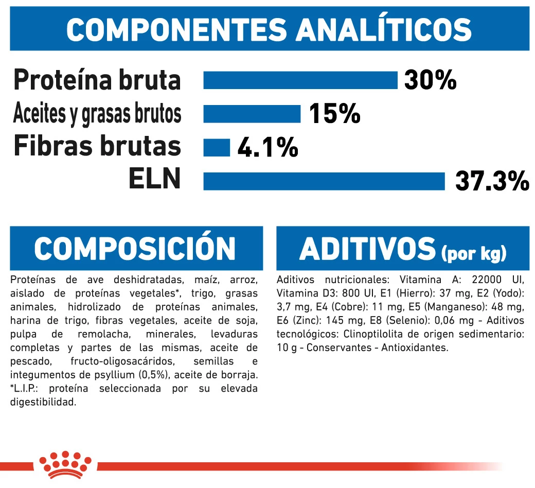 Royal Canin intérieur Cheveux longs La nourriture pour chats avec les cheveux longs qui vivent exclusivement à la maison. Favorise la brillance des cheveux et de la santé de la peau, il aide à réduire les boules de poils et l’odeur des matières fécales et est riche en protéines. Les cheveux longs est belle mais nécessite aussi beaucoup de soins. Royal Canin alimentation intérieure Cheveux longs aide votre chat à l’intérieur avec le soin des cheveux par jour. Le principal problème des chats à poils longs est la formation de boules de poils en raison de l’accumulation de poils ingérés. Ces balles causent des vomissements chez les chats mal à l’aise et affectent leur bien-être et le système digestif. Cet aliment contient un mélange de fibres de psyllium et qui favorise le tube digestif et ainsi également le transit des poils. La teneur en protéines et en matières grasses de cette nourriture est adaptée au niveau d’activité des chats vivant exclusivement à l’intérieur afin de pondérer l’aide de commande. Toutes les fonctionnalités en un coup d’oeil: Je pense équilibré pour les chats à poils longs qui vivent à la maison Royal Canin intérieur Cheveux longs pleine recette La formule spéciale soutient les cheveux longs en bonne santé ainsi que votre minette. Royal Canin intérieur Cheveux longs Croquante et innovante Délicieux croquettes et l’acceptation d’augmentation spécialement adaptée de la nourriture. Les boules de poils combat: ils peuvent causer des vomissements et la perte de nutriments Très digeste: psyllium et protéines de haute digestibilité favorisent la digestion et réduire l’odeur des matières fécales protéines: abondantes pour répondre aux besoins de votre chat Adapté teneur en matières grasses: pour les chats d’intérieur adapté apport équilibré en minéraux: prend en charge les voies urinaires