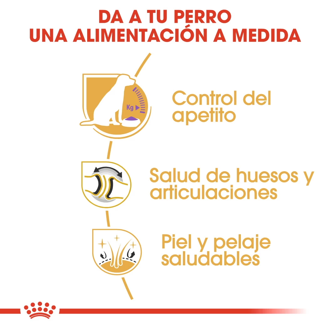 Les croquettes stérilisées ROYAL CANIN® Labrador Retriever ont été exclusivement formulées pour les Labrador Retrievers. Sa forme spécifiquement adaptée permet également de réduire la quantité d’aliments ingérés.