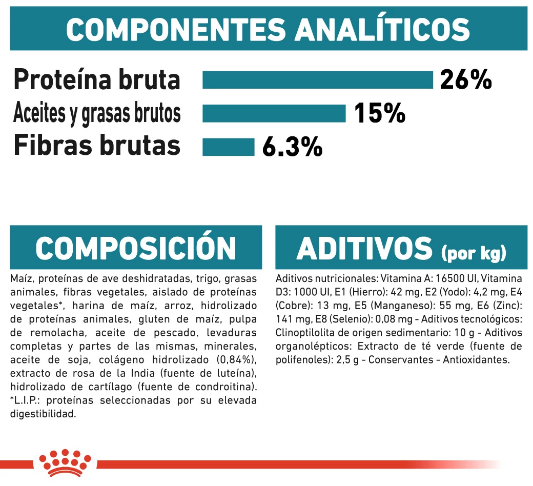 ROYAL CANIN® Joint Care Maxi est un aliment très appétent qui contient les nutriments nécessaires à la protection des os et des articulations pour aider votre chien à rester actif, à apprécier l’exercice et à se déplacer avec plus d’agilité. Et pour les chiens, c’est synonyme de plaisir !