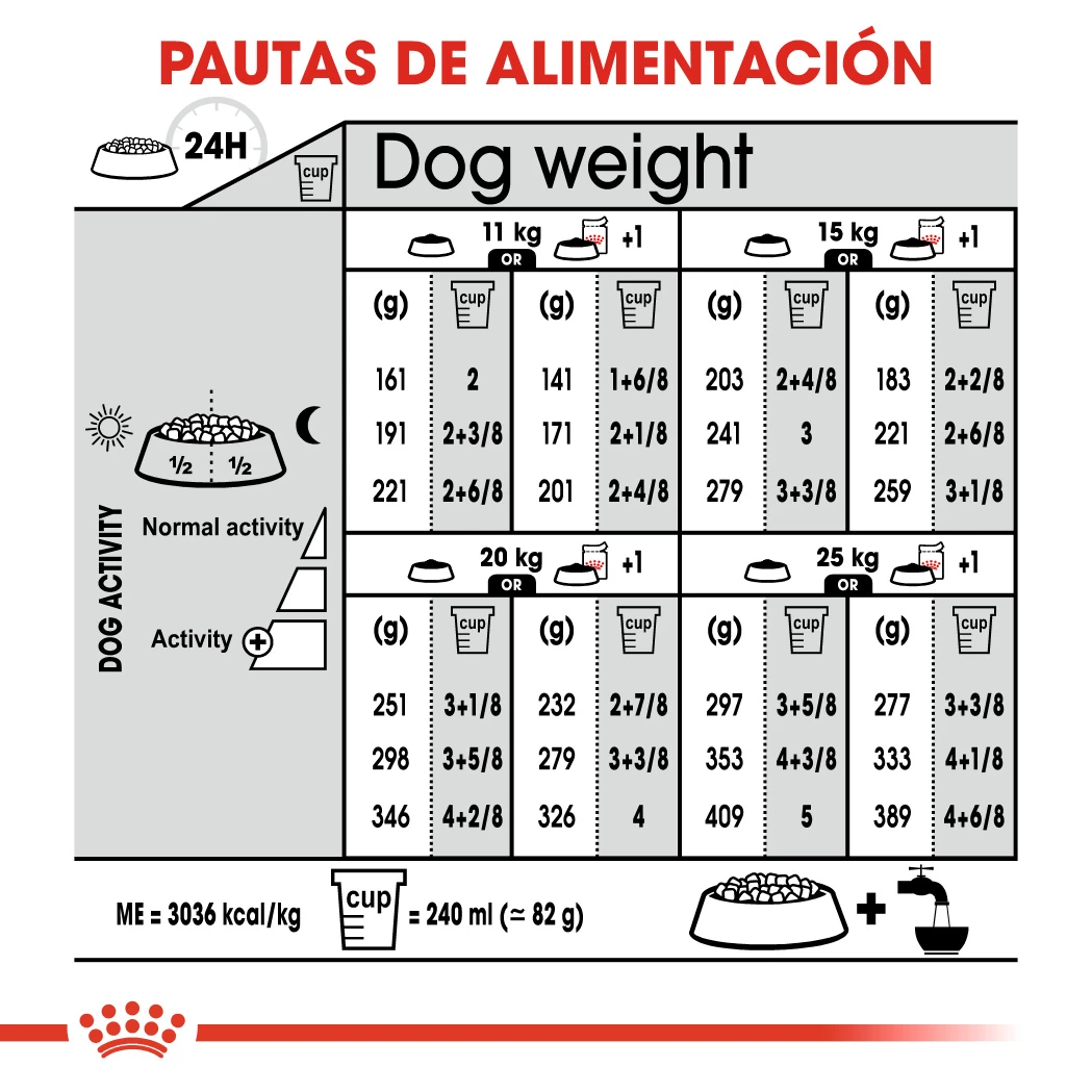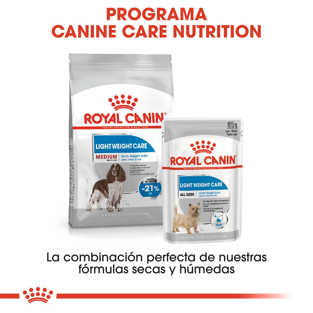 ROYAL CANIN® Light Weight Care Medium est un aliment adapté aux chiens de 11 à 25 kg et contribue à maintenir le poids de votre chien. Cette formule unique contient un groupe d’acides gras oméga 3 (dont l’EPA et le DHA) pour favoriser la santé des articulations.