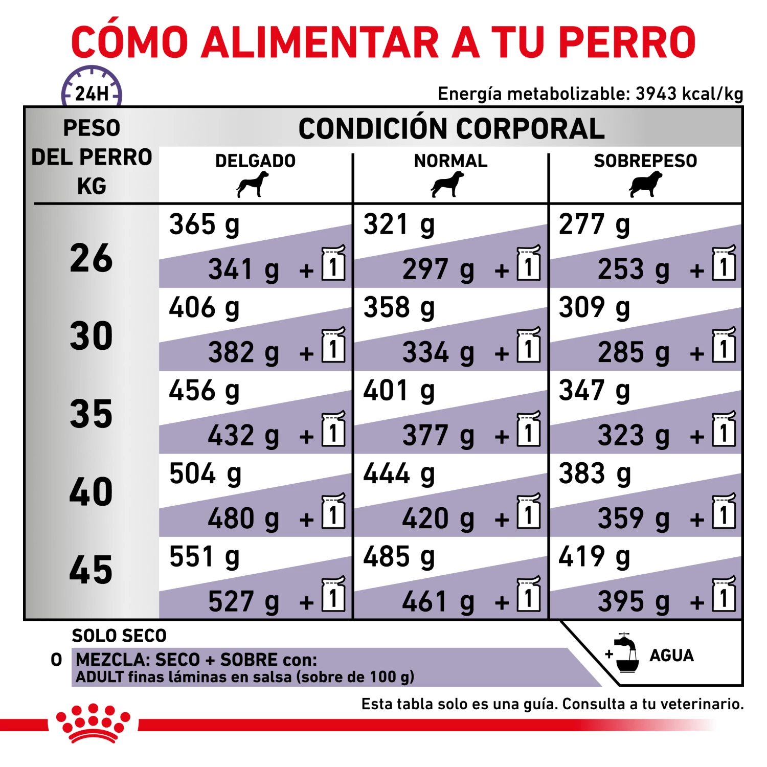 Royal Canin a conçu cet aliment pour maintenir la santé des chiens dentre 25 et 45 Kg avec sensibilité digestive ou articulaire.
