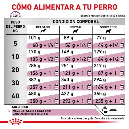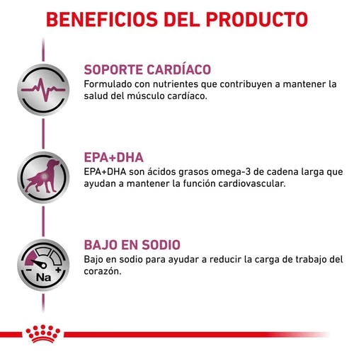 CARDIAC est un aliment diététique complet pour chiens souffrant d’insuffisance cardiaque chronique. Cet aliment contient un faible taux de sodium et des taux de potassium adaptés. Indications : – Hypertension – Insuffisance/maladie cardiaque (premières phases) – Insuffisance/maladie cardiaque (phases 1 à 3) – Insuffisance/maladie cardiaque (phase 4) – Insuffisance/maladie cardiaque (dernière phase) Contre-indications : – Gestation – Lactation – Pancréatite – Hyperlipidémie – Croissance Des nutriments spécifiques pour aider à améliorer le système vasculaire et contribuer à neutraliser les radicaux libres. Un taux modéré de phospore pour aider à préserver la fonction rénale. Des taux de potassium, magnesium et sodium adaptés à l’insuffisance cardiaque chronique. Des nutriments qui contribuent à maintenir la santé du muscle cardiaque