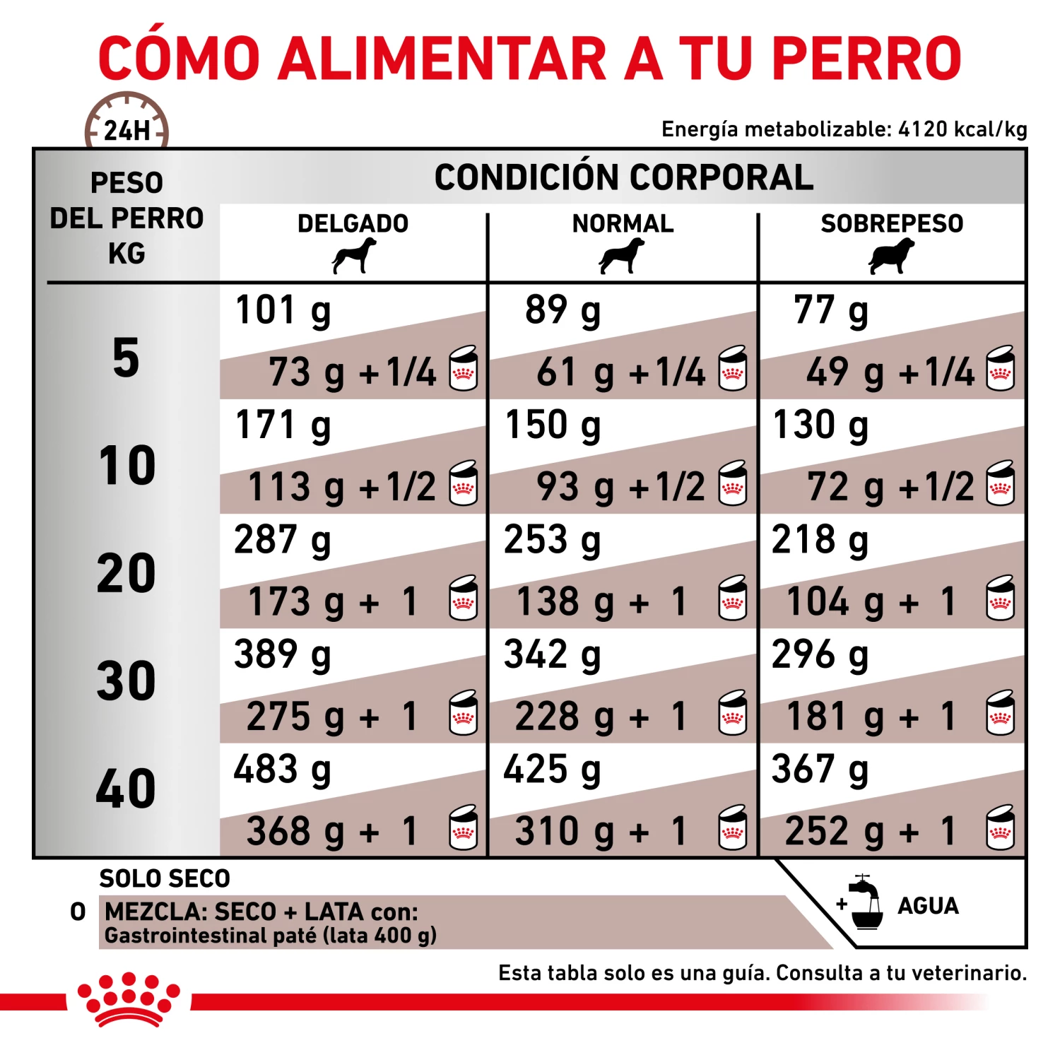 L’aliment Royal Canin Gastro-intestinal offre un haut niveau d’énergie et de graisses. Il s’agit d’une alimentation adéquate pour chiens ayant des problèmes digestifs car il favorise une récupération rapide. Il garantit un consommation spontanée grâce à sa haute palatabilité. Il favorise l’appareil digestif et réduit la charge digestive grâce à sa teneur en acides gras.