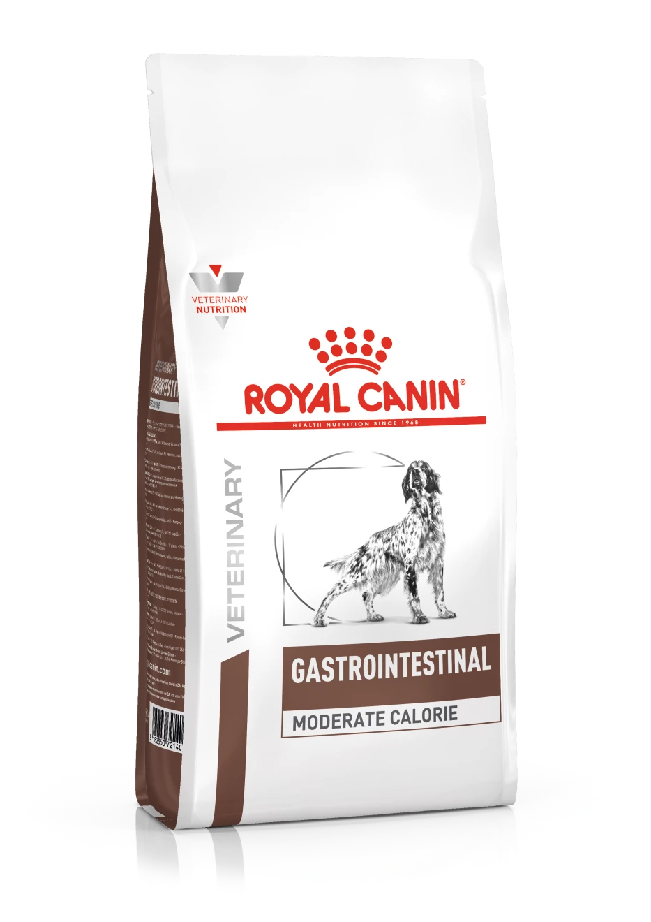 Royal Canin VD Canine Gastro Intestinal Moderated Calorie Cest un aliment pour chiens ayant des problèmes digestifs chroniques.