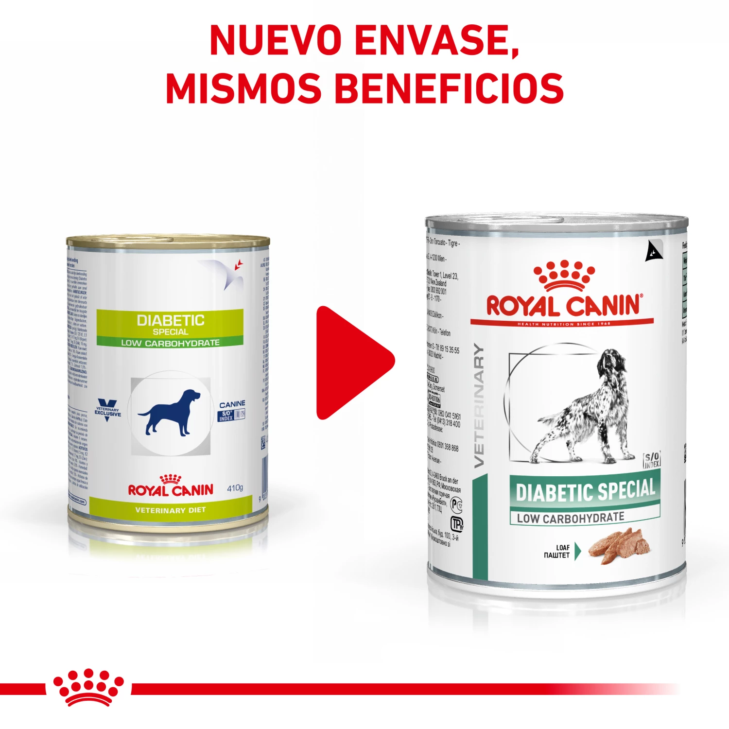 Royal Canin VD Canine Diabetic Low Cest un aliment complet diététique pour chiens, formulé spécialement pour ajuster la contribution de glucose (Diabète Sucré).