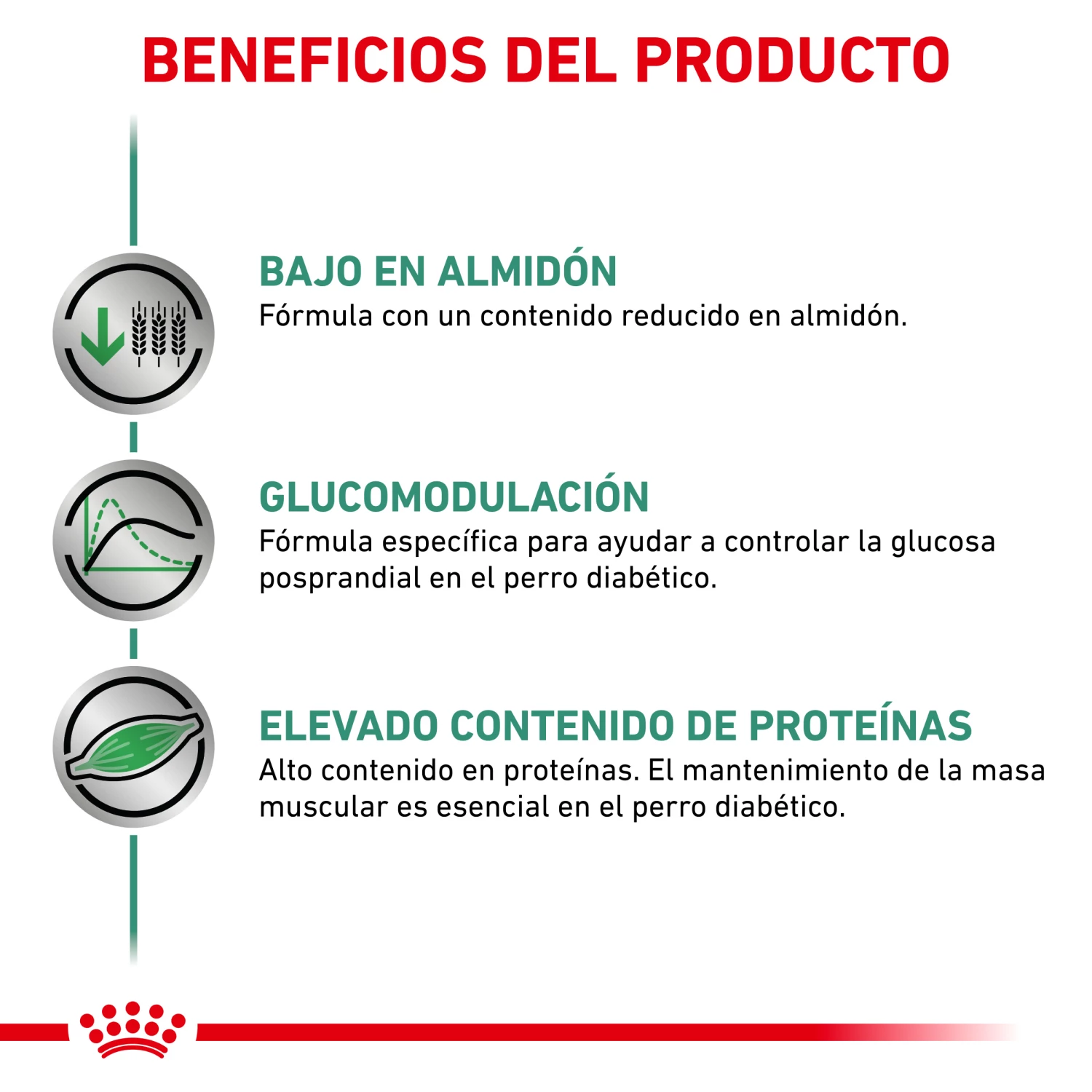 Bienfaits clés Royal Canin Diabetic Low : Il ralentit la digestion dans lintestin grêle et améliore le contrôle de la glycémie chez les chiens diabétiques, grâce aux fibres alimentaires.