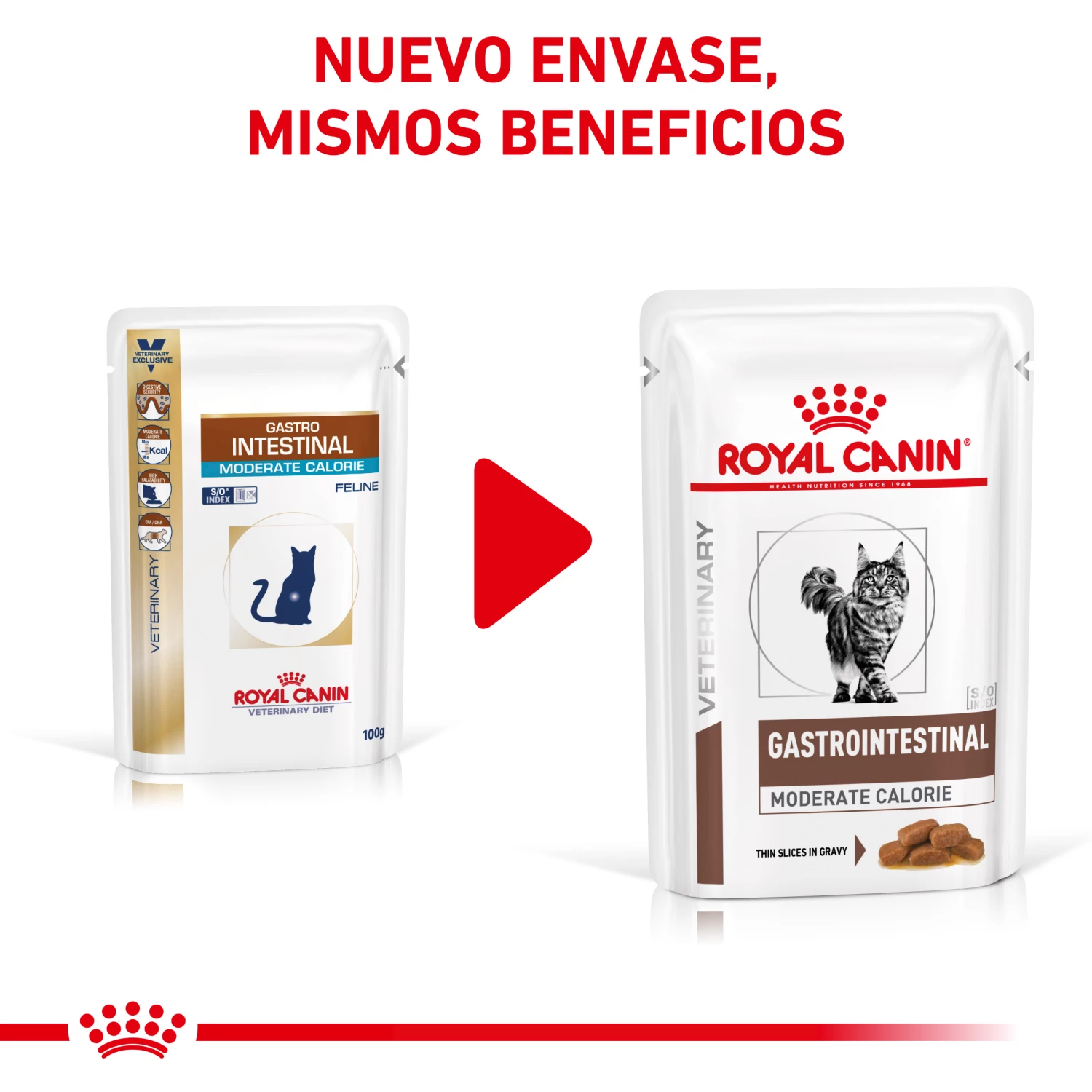 GASTRO-INTESTINAL MODERATE CALORIE est un aliment diététique complet formulé pour réduire les troubles digestifs aiguës et de maldigestion du chat.
