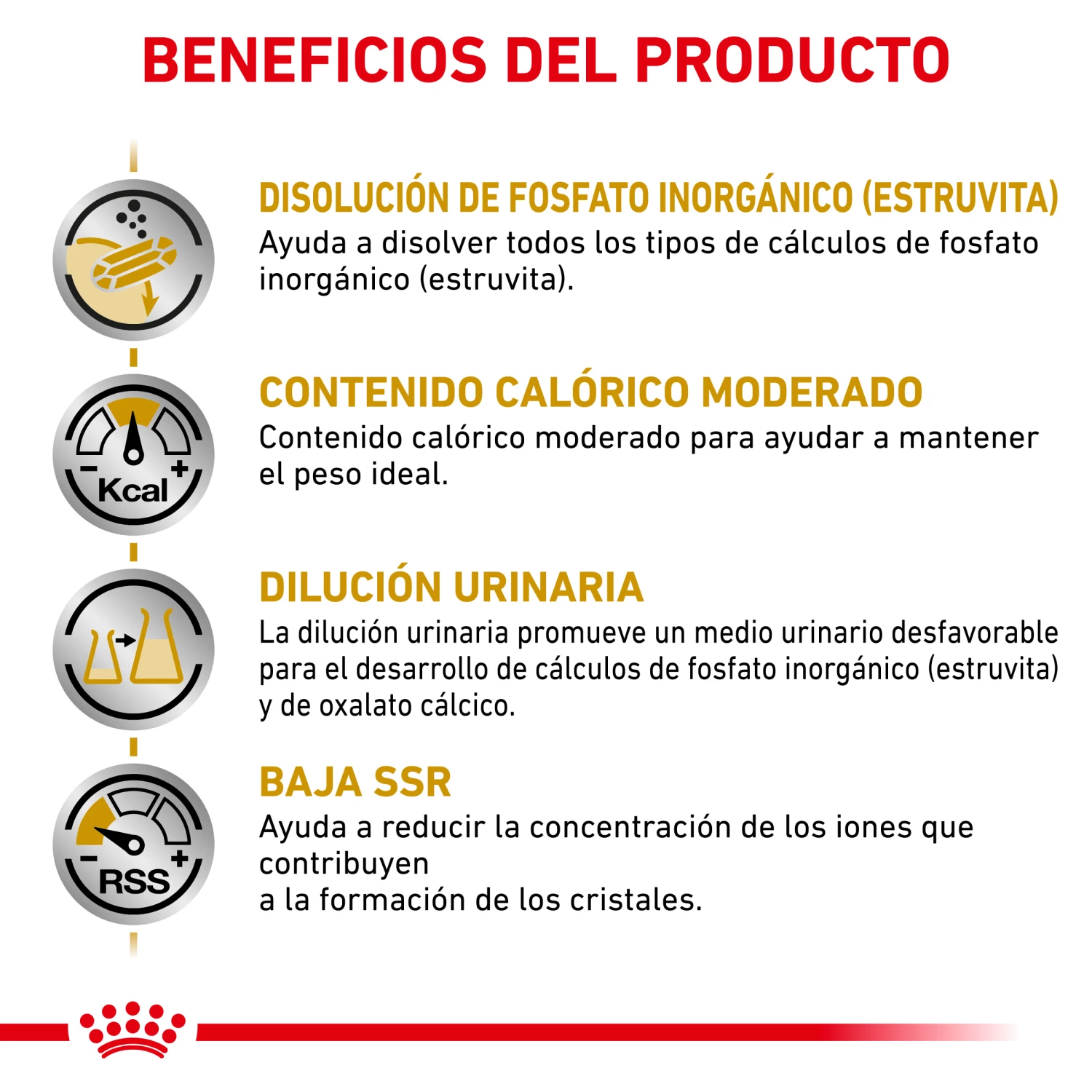 Boîte pour affections du bas appareil urinaire. Est un aliment diététique complet pour chats formulé pour dissoudre les calculs urinaires de struvite et réduire les récidives grâce à des propriétés permettant une sous saturation des urines et un faible taux de magnesium. Il est ainsi recommandé pour le traitement des affections du bas appareil urinaire.Grâce à un apport réduit en calories, il est particulièrement recommandé aux chats ayant tendance à lembonpoint (stérilisé, embonpoint, faible activité).