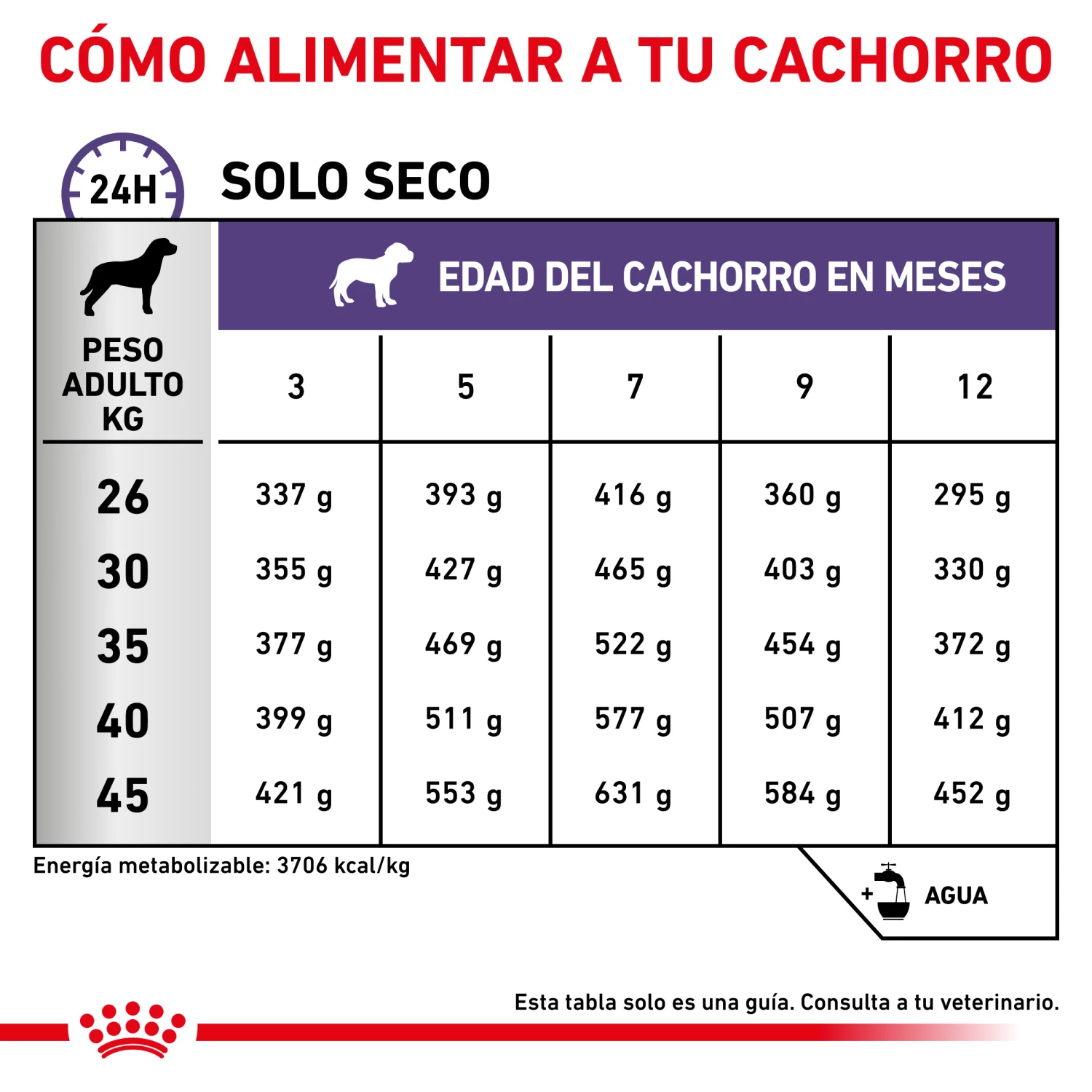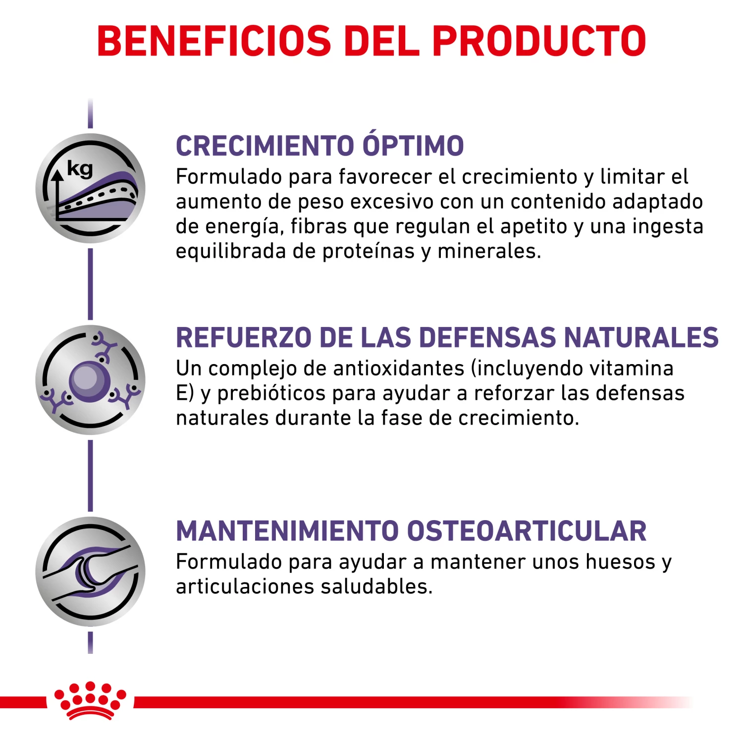 Aliment complet pour chiens. Pour les chiots de taille importante (poids adulte supérieur à 25kg) avec une tendance à l’embonpoint et à sensibilité articulaire. De la stérilisation à 15 mois. Indications : – Risque de prise de poids – Sensibilité articulaire Des nutriments pour contribuer à l’équilibre du système digestif. Contribue à une croissance optimale et évite les excès de poids. Contribue au maintien de la santé articulaire. Un complexe synergique d’antioxydants pour aider à renforcer les défenses naturelles.