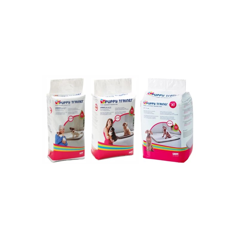 Tapis « Puppy Trainer » super absorbants,Pour vous aider à apprendre à votre chiot la propreté. Permet de fournir une zone délimité pour les chiens qui restent à l’intérieur toute la journée ou pour les chiens souffrant de problèmes d’incontinence. Ce produit peut également être utilisé dans des caisses de transports pour chiens.