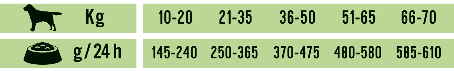 Instructions pour une bonne utilisation: les quantités indiquées se réfèrent à la fourniture uniquement du produit sec et peuvent varier en fonction des besoins spécifiques de l’animal. Nourrissez-le plein et équilibré avec Schesir Dry, et rendez-le naturellement heureux en ajoutant Schesir Wet aussi. Laissez toujours de l’eau fraîche à disposition. Le changement vers le nouvel aliment doit être progressif. Conservez dans un endroit frais et sec.