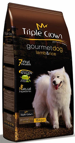 Triple Crown Gourmetdog est un aliment complet à base d’agneau et de riz pour chiens adultes de toutes races, avec des ingrédients riches en antioxydants naturels et en acides gras essentiels. La formule équilibrée fournit une alimentation complète qui contribue à un état corporel sain. Triple Crown Gourmetdog convient donc pour répondre à tous les besoins nutritionnels quotidiens de votre chien adulte. L’agneau offre des nutriments hautement digestibles, même pour les chiens les plus sensibles.