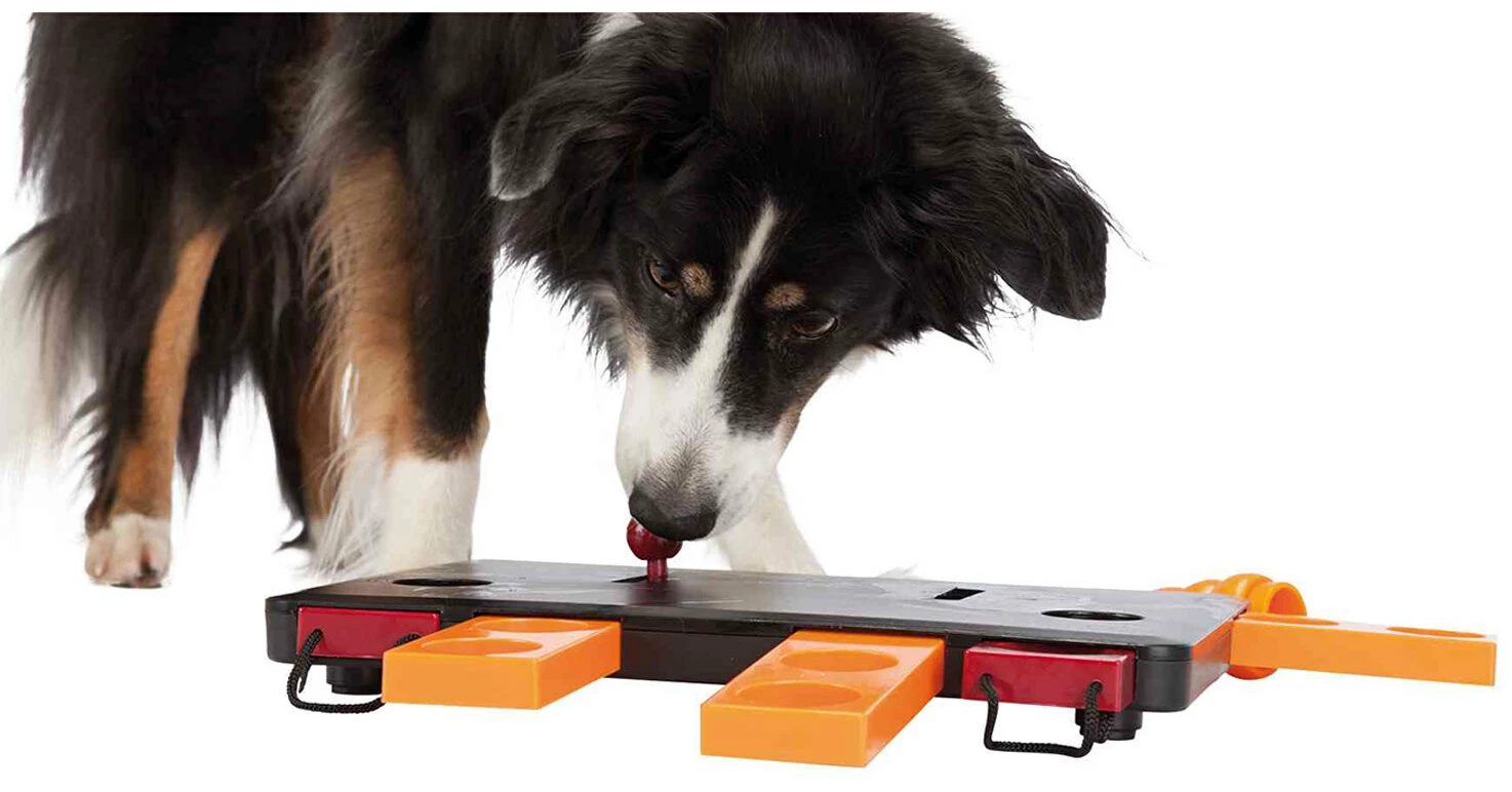 – Jeu d’expert : ouvrez les tiroirs à l’aide des couvercles et poussez les glissières pour aider votre chien à obtenir les friandises.