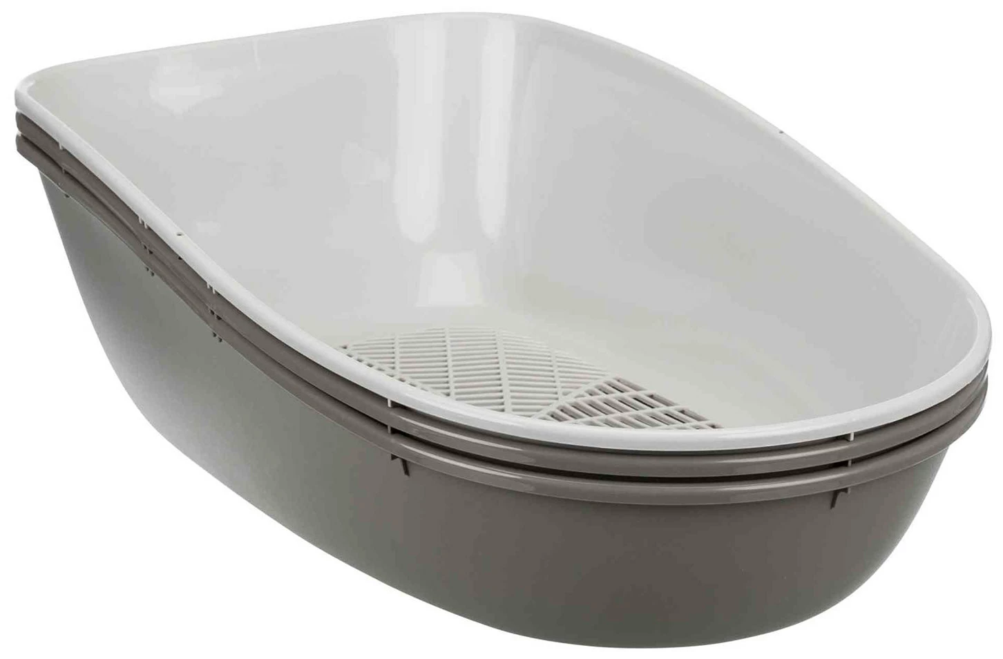 Bac à litière couvert pour chats avec porte à charnière et poignée. Il dispose d’un filtre à charbon actif qui neutralise les odeurs désagréables, et intègre un système de 2 plateaux et 1 tamis qui permet un nettoyage rapide et facile. Ses fermetures à pression permettent de l’ouvrir et de le fermer plus rapidement, et facilitent également le nettoyage. Il dispose d’un système de séparation hygiénique des déchets et d’une faible consommation de lit. Le filtre de remplacement est la réf. 40350.