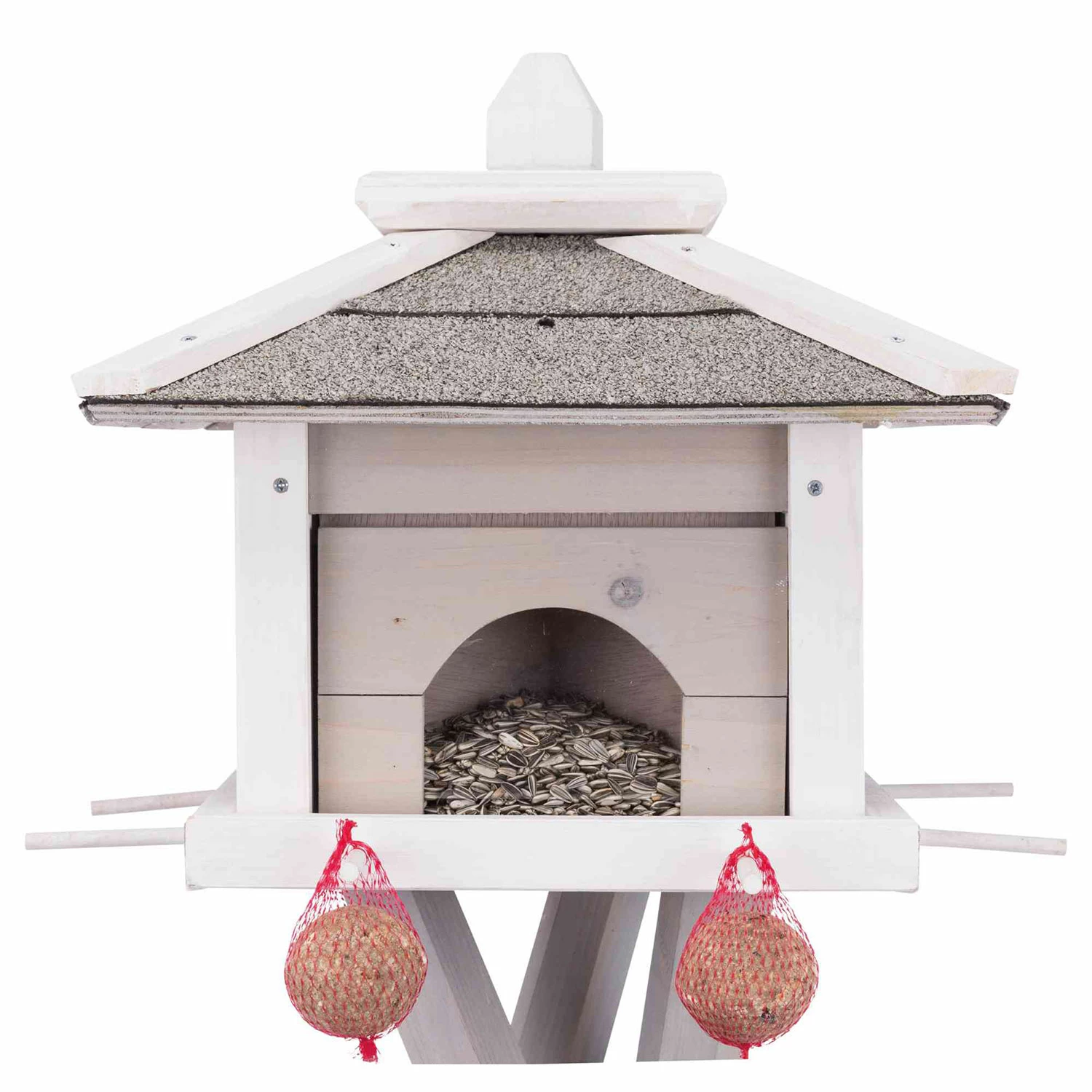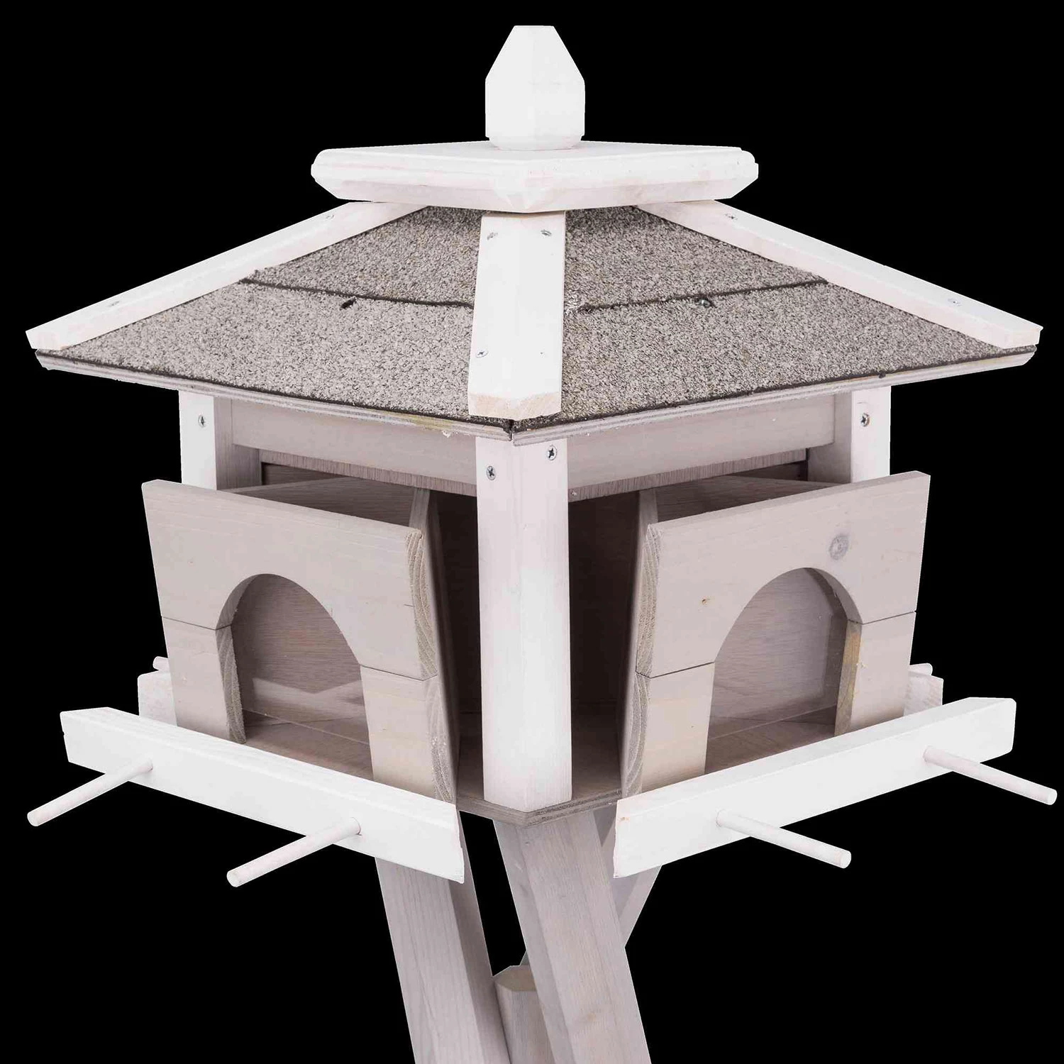 - Avec un plateau d’alimentation supplémentaire pour les oiseaux qui se nourrissent au sol