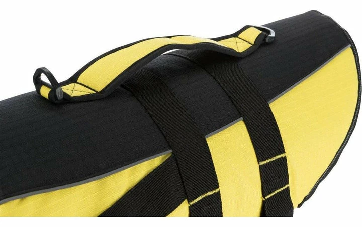 Pour sélectionner la taille appropriée du gilet de durée de vie, utilisez les données de poids du chien et non la longueur du dos. Pour nager le chien, portez la queue, assurez-vous que le gilet ne le couvre pas.