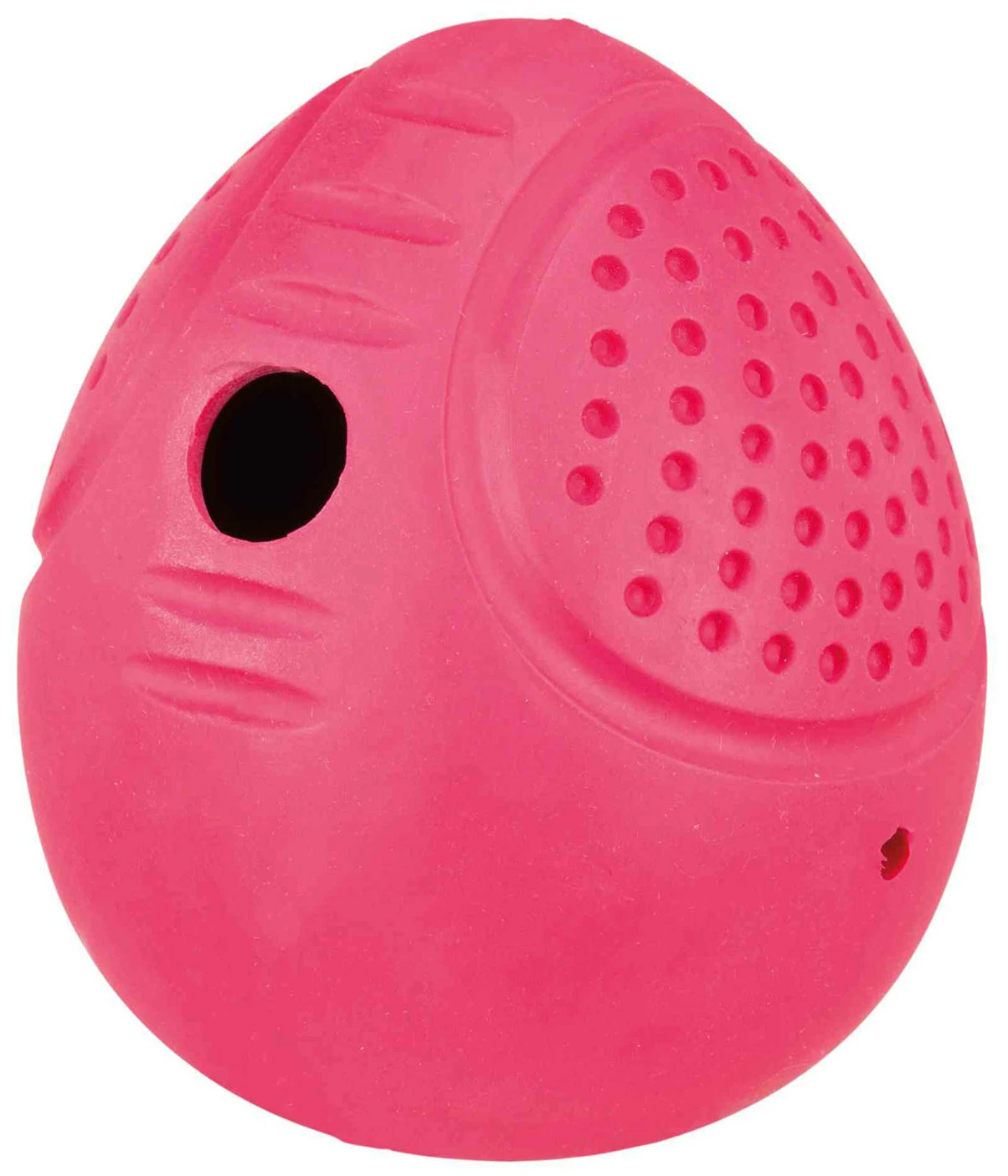 Jouet interactif pour chien en caoutchouc naturel, pouvant être rempli de friandises. Ce jouet garantit un amusement supplémentaire grâce à l’effet de culbute et aux ouvertures pour les friandises. La balle assure plus de divertissement : elle roule tranquillement et rebondit de façon irrégulière.