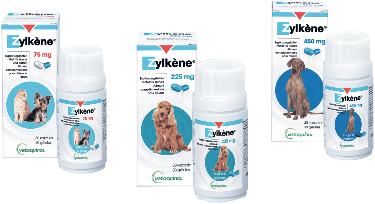 Zylkène est un aliment complémentaire, élaboré à base d’alpha-cazosépine, dont l’effet relaxant aide les chiens et les chats à faire face aux situations stressantes de leur quotidien.