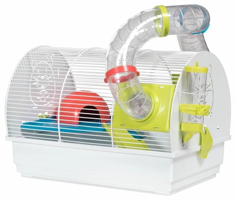 Cette grande cage, très complète, est idéale pour les hamsters russes et Roborosky, grâce à une maille avec une séparation entre les fils de 7mm. Fabriqué en Espagne Fabriqué en Europe (Espagne), avec de la peinture époxy sans plomb et du plastique polypropylène non toxique.