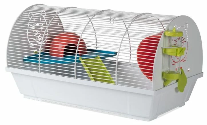 Cette grande cage, très complète, est idéale pour les hamsters russes et Roborosky, grâce à une maille avec une séparation entre les fils de 7mm. Fabriqué en Espagne Fabriqué en Europe (Espagne), avec de la peinture époxy sans plomb et du plastique polypropylène non toxique.
