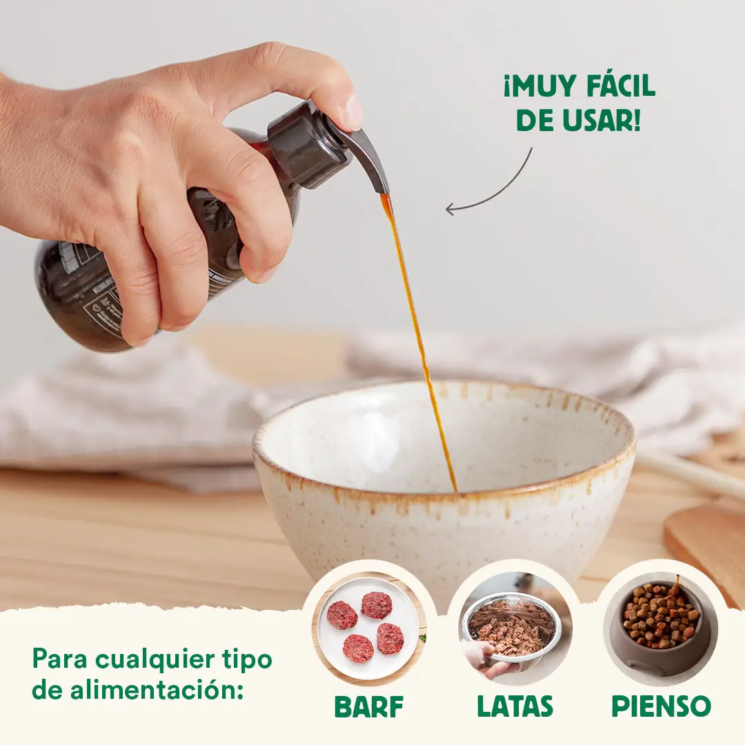 Saumon norvégien d’huile sauvage L’équilibre est un programme qui apporte de nombreux avantages pour votre complément alimentaire de santé et 100% naturel pour les chiens et les chats. Je peux donner tous les jours, par exemple en ajoutant à leur ration de BARF équilibre sauvage ou tout autre type de nourriture (humide ou sec). Recommandé pour les chiens et les chats. Inclure le saumon norvégien huile Équilibre sauvage à l’alimentation de votre animal de compagnie vous aidera à améliorer votre alimentation car il est une source naturelle d’oméga 3, des acides gras essentiels. Dosage Chiens: 2,5 ml (deux doses) par rapport au poids 5 kg Chats: 2.5ml (deux doses) par poids 6 kg Note: 1 dose d’huile équivalente à 1,25ml Bénéfices If’ll comprennent l’huile de saumon pour améliorer un problème de santé, il est préférable de consulter votre vétérinaire au sujet de la dose à donner. – Maintient la peau et des cheveux sains – Soins de santé cardiovasculaire – Renforce le système immunitaire __gVirt_NP_NN_NNPS